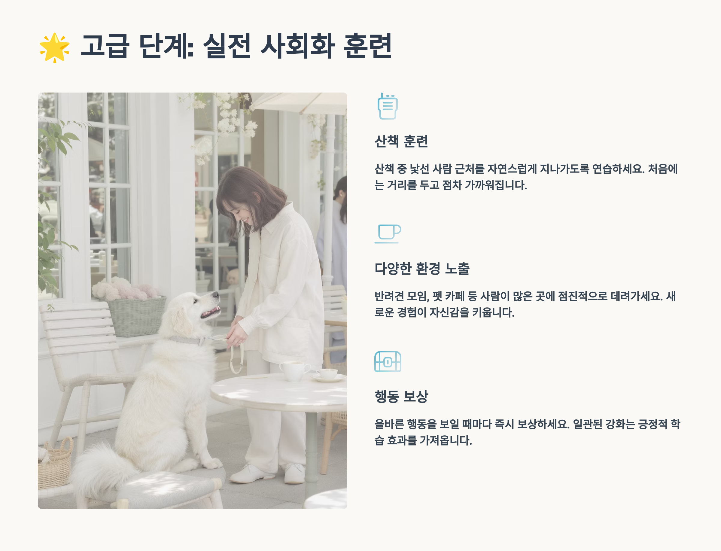 🌟 고급 단계: 실전 사회화 훈련