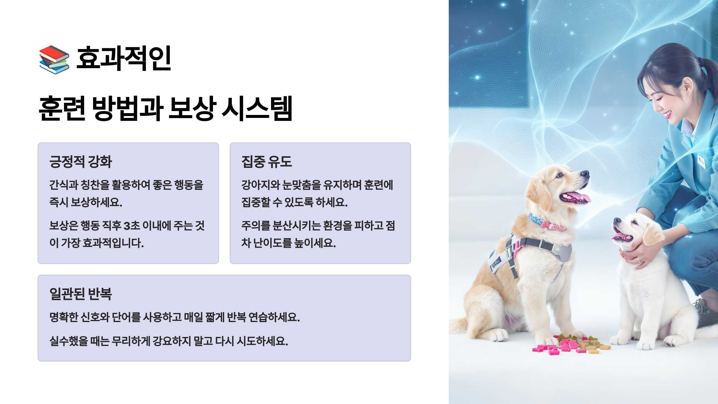 지금까지 강아지 명령어 교육의 핵심을 기초부터 응용까지 단계별로 살펴봤어요. 성공적인 훈련의 비결은 사랑, 인내심, 그리고 일관성이라는 것을 기억하세요. 매일 조금씩 꾸준히 연습하다 보면 어느새 여러분의 강아지는 훌륭한 가족 구성원이 되어 있을 거예요.