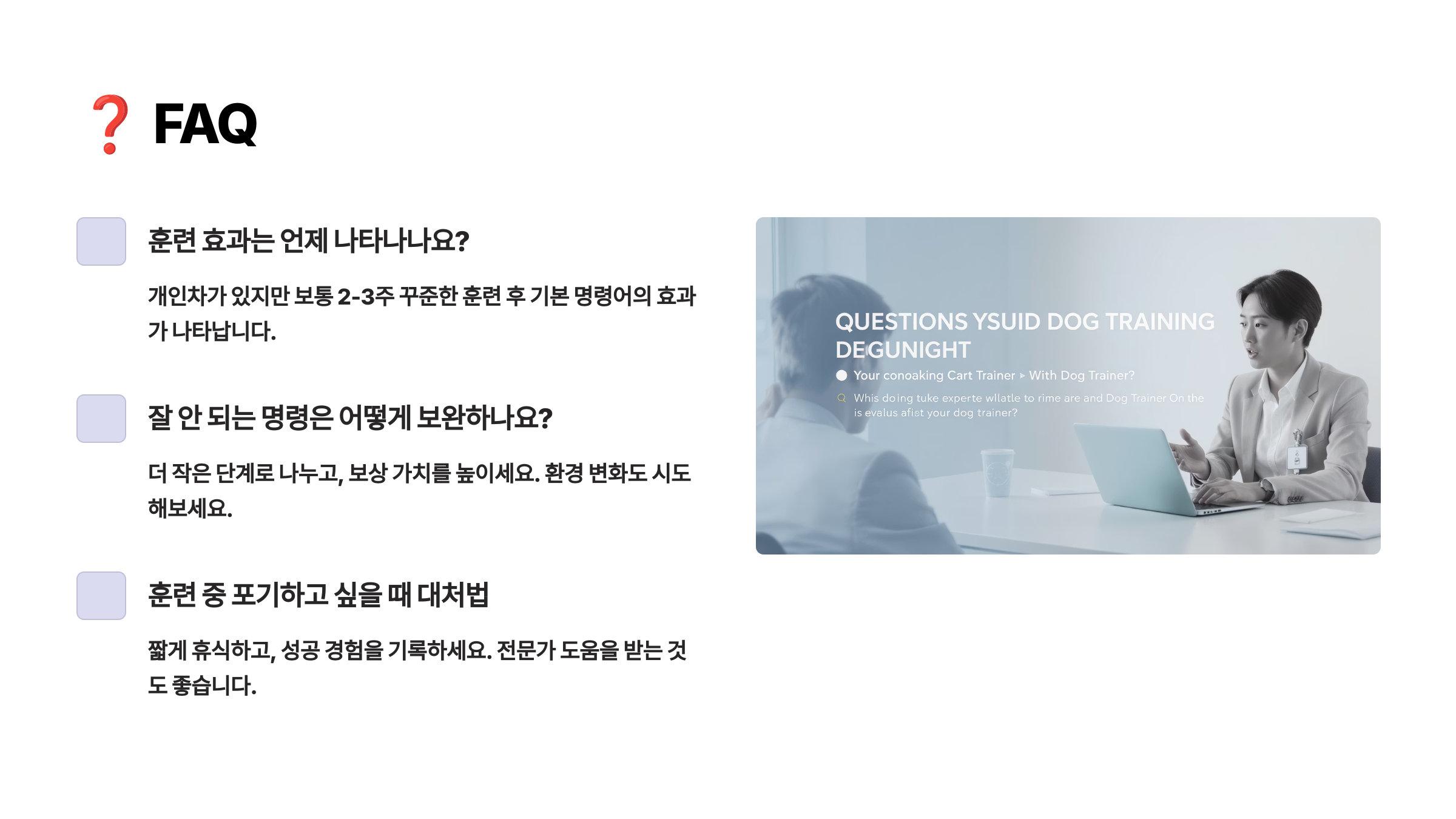 Q4. 훈련해도 잘 안 따라 하는데 어떻게 해야 하나요?