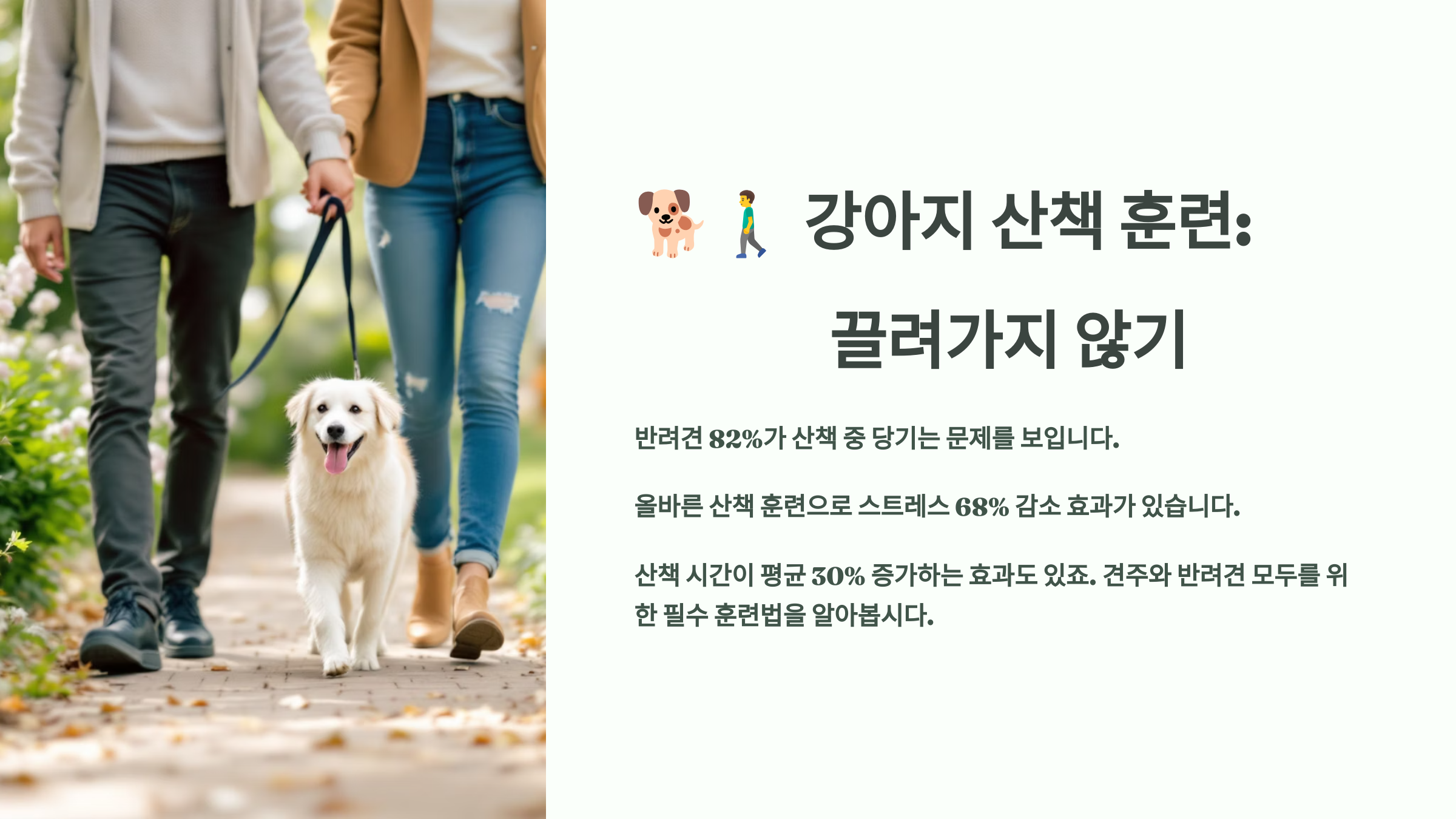 "산책은 신나야 하는데, 매번 강아지에게 끌려다니기만 한다면?" 강아지 산책 훈련은 단순한 산책 이상의 의미를 가지고 있어요. 🐶🛤️