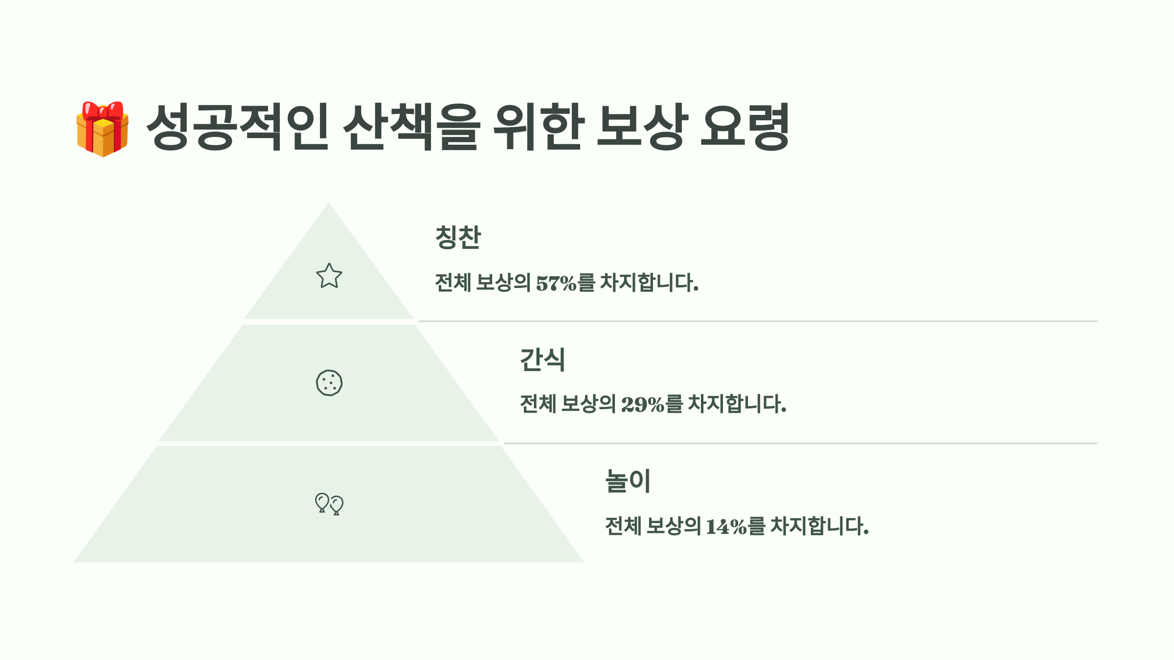 성공적인 산책은 보상 → 긍정 경험 → 자신감 상승의 반복으로 완성된답니다! 🏆🐕💖