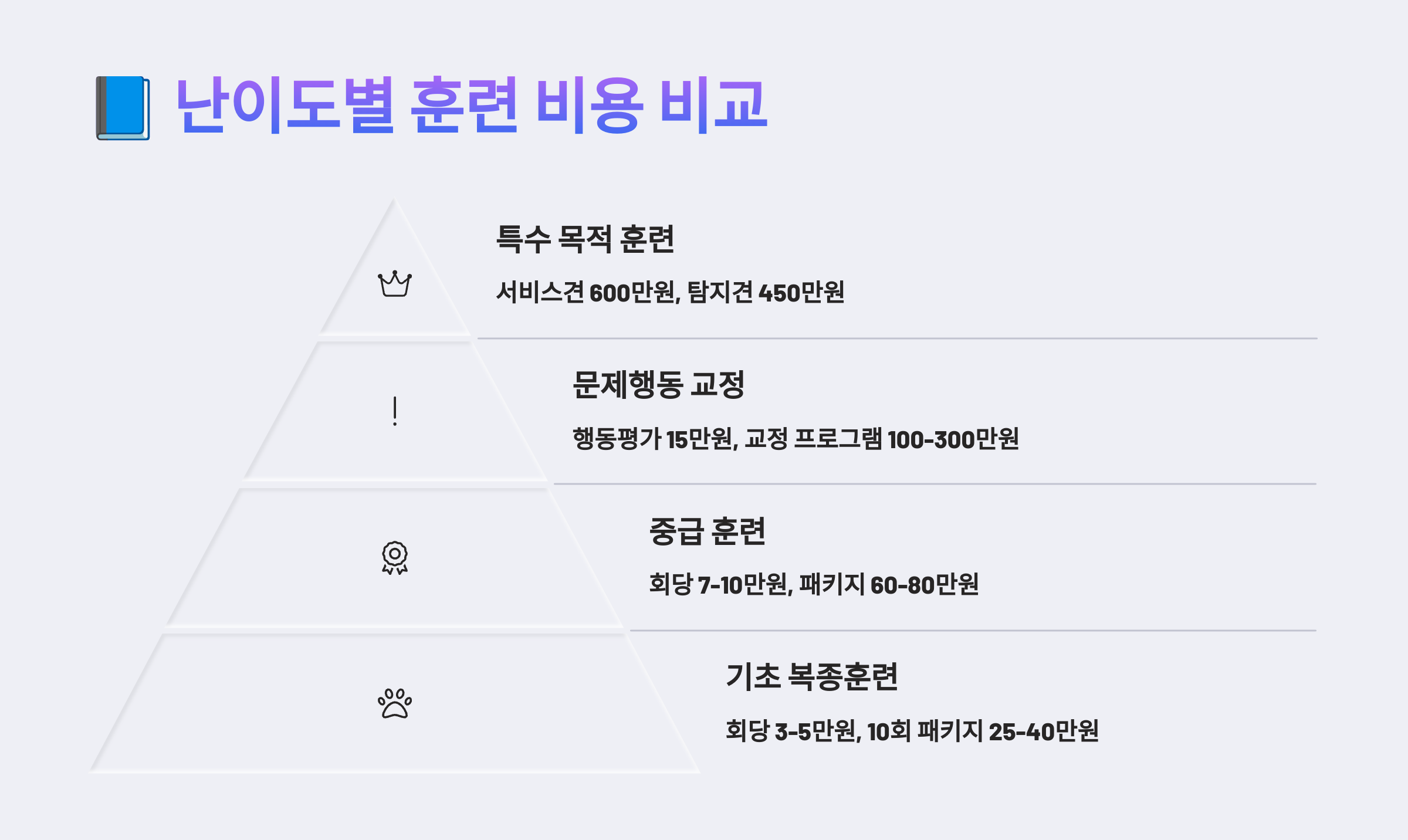 복합 문제나 강한 공격성의 경우에는 전문 행동 교정사를 따로 불러야 하고, 이때는 회당 15만 원 이상이 되기도 해요. 난이도가 올라갈수록 시간 + 경험 + 기술이 더 들어가니까요! 🧠🐶