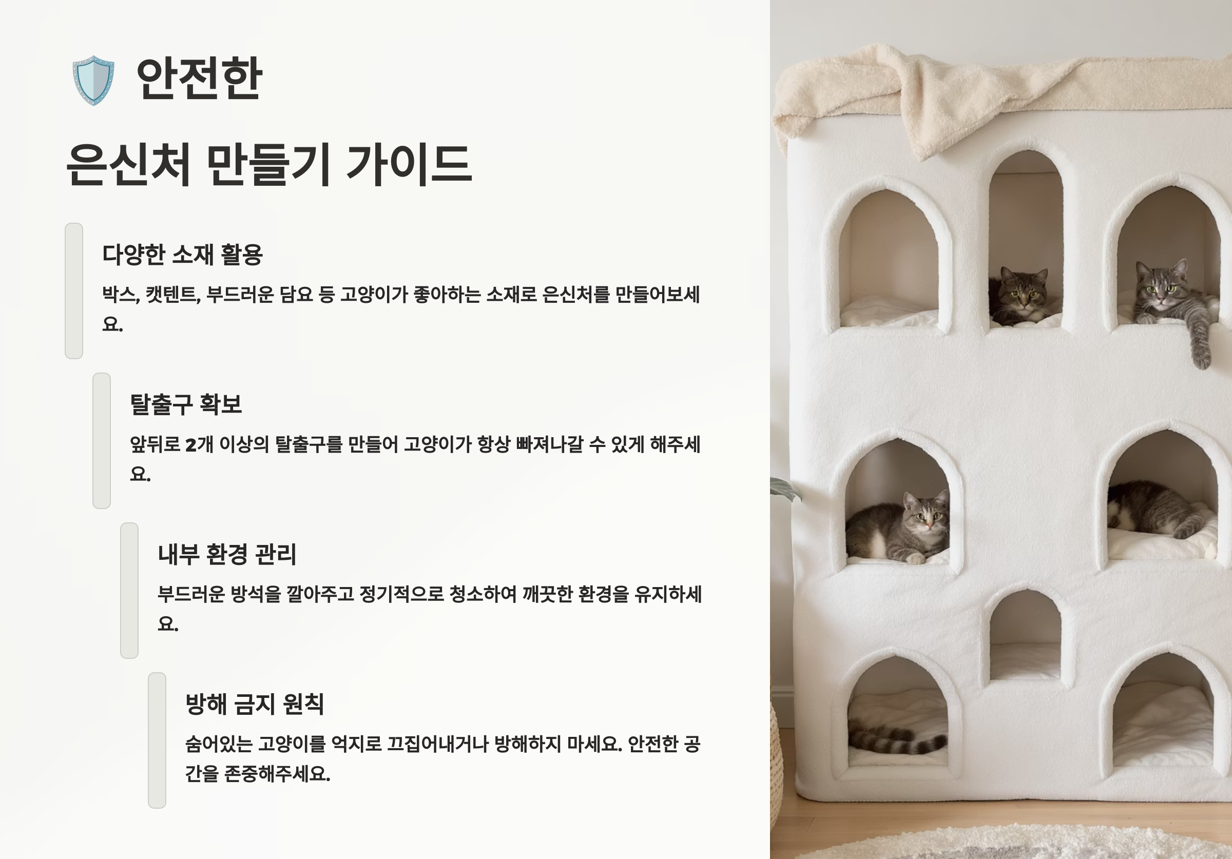 | 은신처 유형 | 선호하는 고양이 성격 | 장점 |