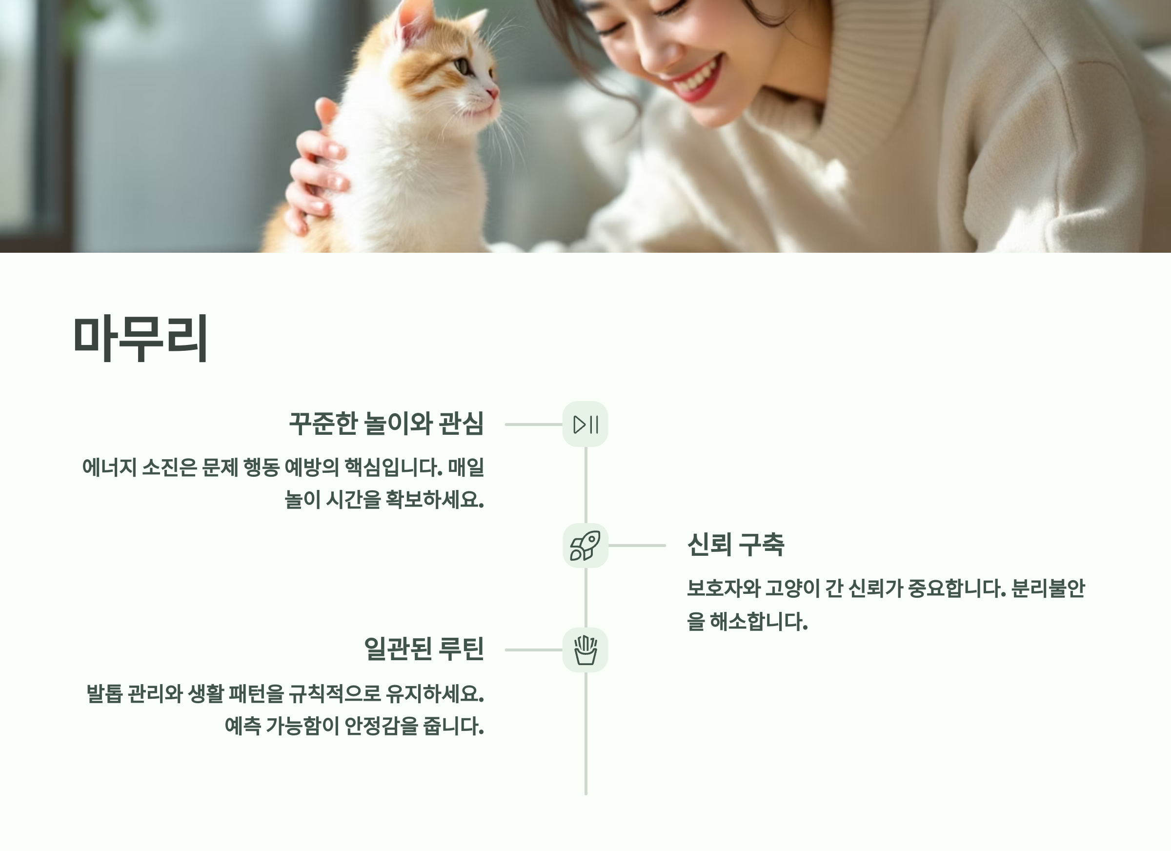 건강하고 행복한 고양이와의 동거를 위해 응원할게요. 궁금한 점이 있으시면 언제든 전문가의 도움을 받으시고, 꾸준한 관심과 사랑으로 우리 고양이를 돌봐주세요. 분명히 좋은 변화가 있을 거예요!