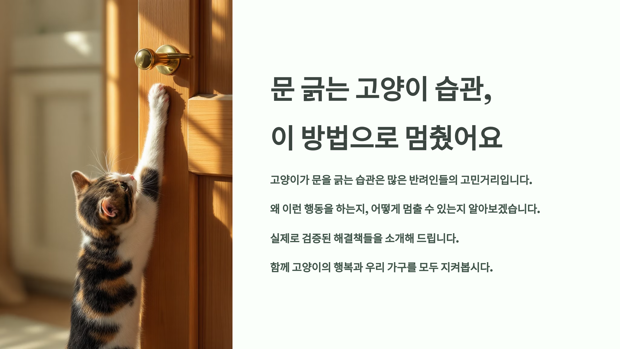 고양이가 문을 긁는 행동 때문에 스트레스받고 계신가요? 😰 문이 상하는 건 물론이고, 밤에 긁는 소리 때문에 잠도 제대로 못 자시죠. 실제로 많은 집사들이 이 문제로 고민하고 있어요. 하지만 걱정하지 마세요!