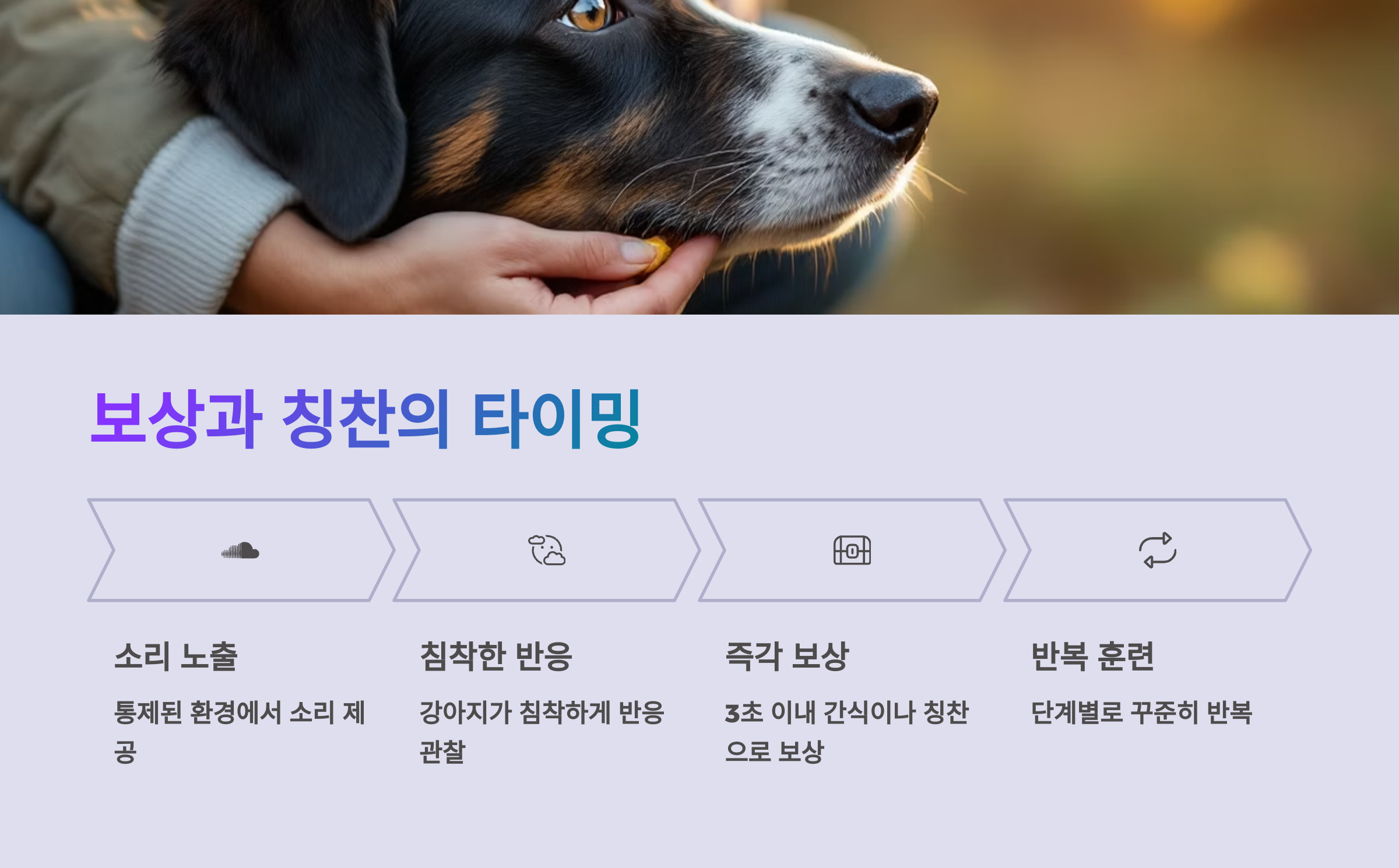 소리훈련의 핵심은 반복된 노출을 통해 익숙함을 주는 것이에요. 단, 이때 주의할 점은 갑작스럽거나 과도한 자극은 오히려 역효과가 나요. 그래서 단계적으로 천천히 접근해야 해요. 🐾