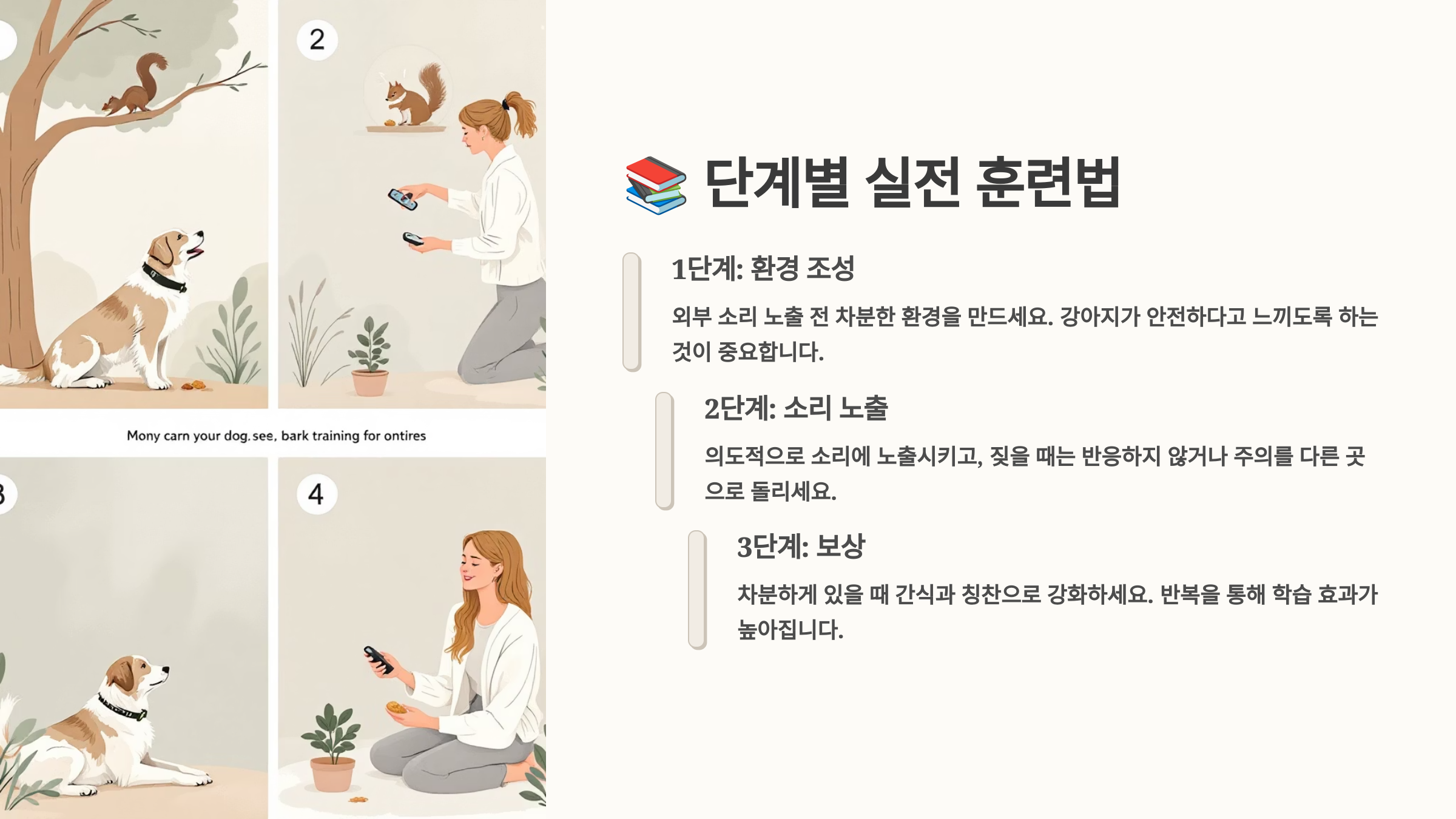 각 단계별로 성공 기준을 명확히 하고 진행 상황을 기록해두면 훈련의 효과를 객관적으로 평가할 수 있어요. 성공률이 기준에 미달한다면 이전 단계로 돌아가 더 연습하는 것이 중요해요. 📚