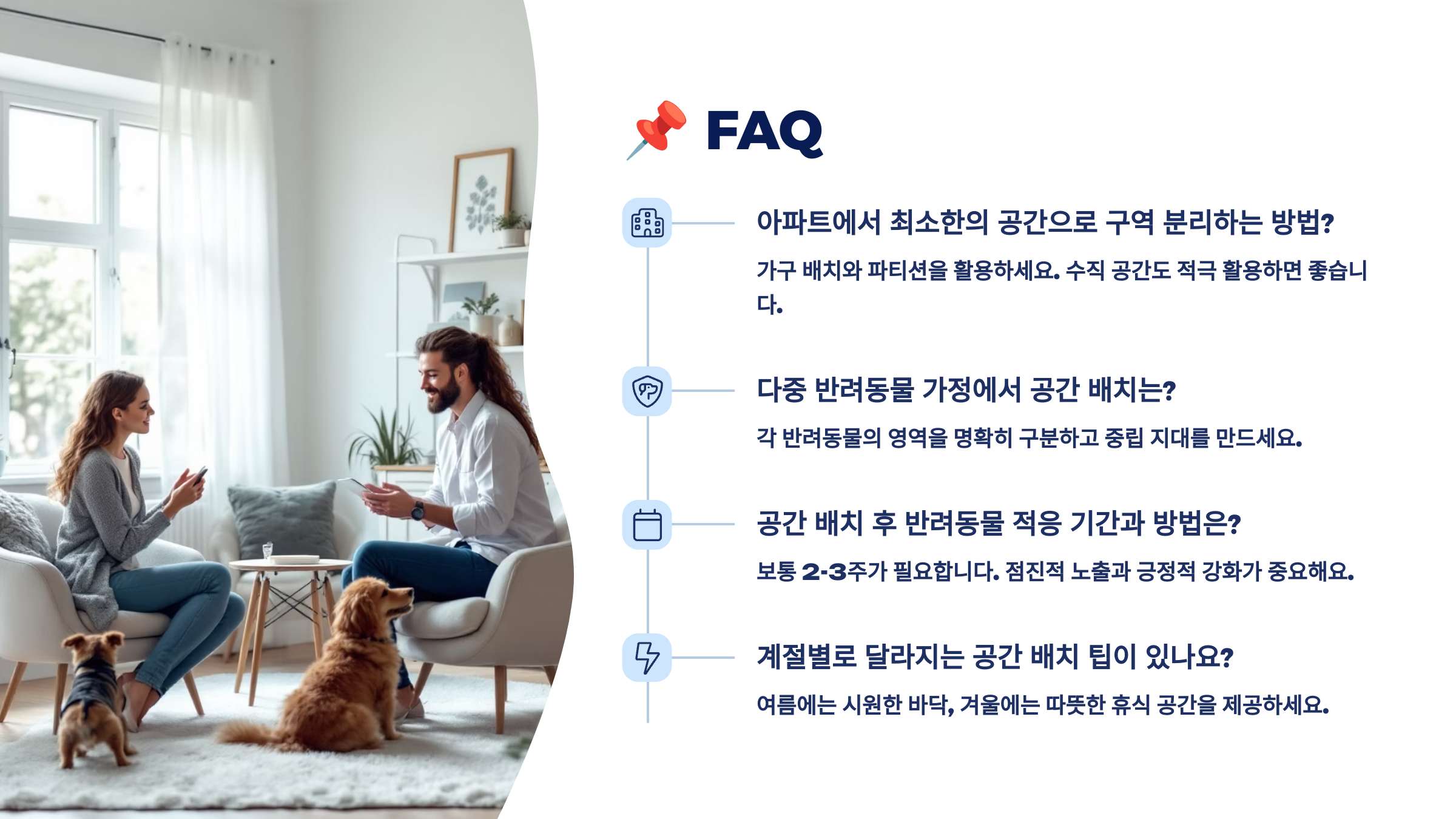 이제 모든 공간 배치 꿀팁을 확인했어요! 다음은 마지막으로 궁금했던 질문들을 모은 📌 FAQ 섹션입니다! 📝🐾