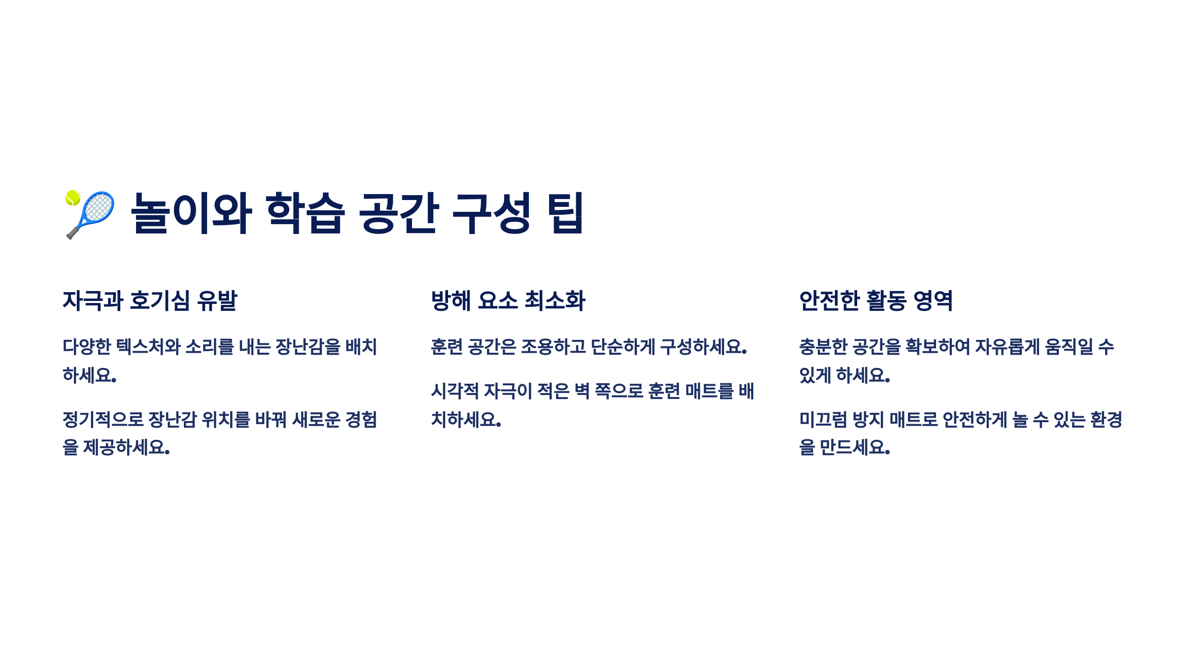 🧩 놀이/훈련 공간 필수 요소 체크리스트