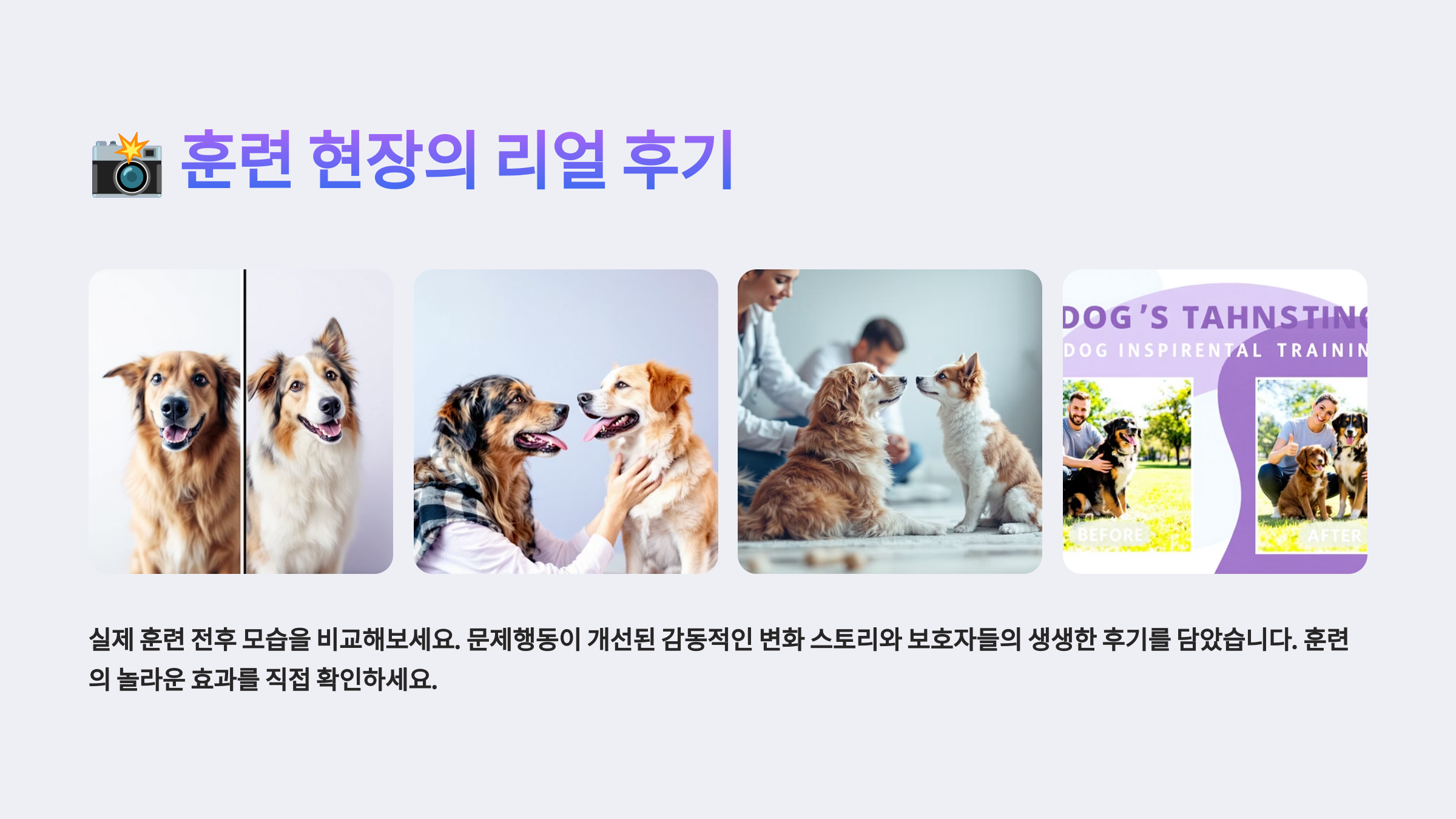 아래는 훈련사들이 경험한 실제 훈련 전·후 반응을 정리한 요약표예요. 이 변화들이 훈련사의 원동력이 되어줘요. ✅
