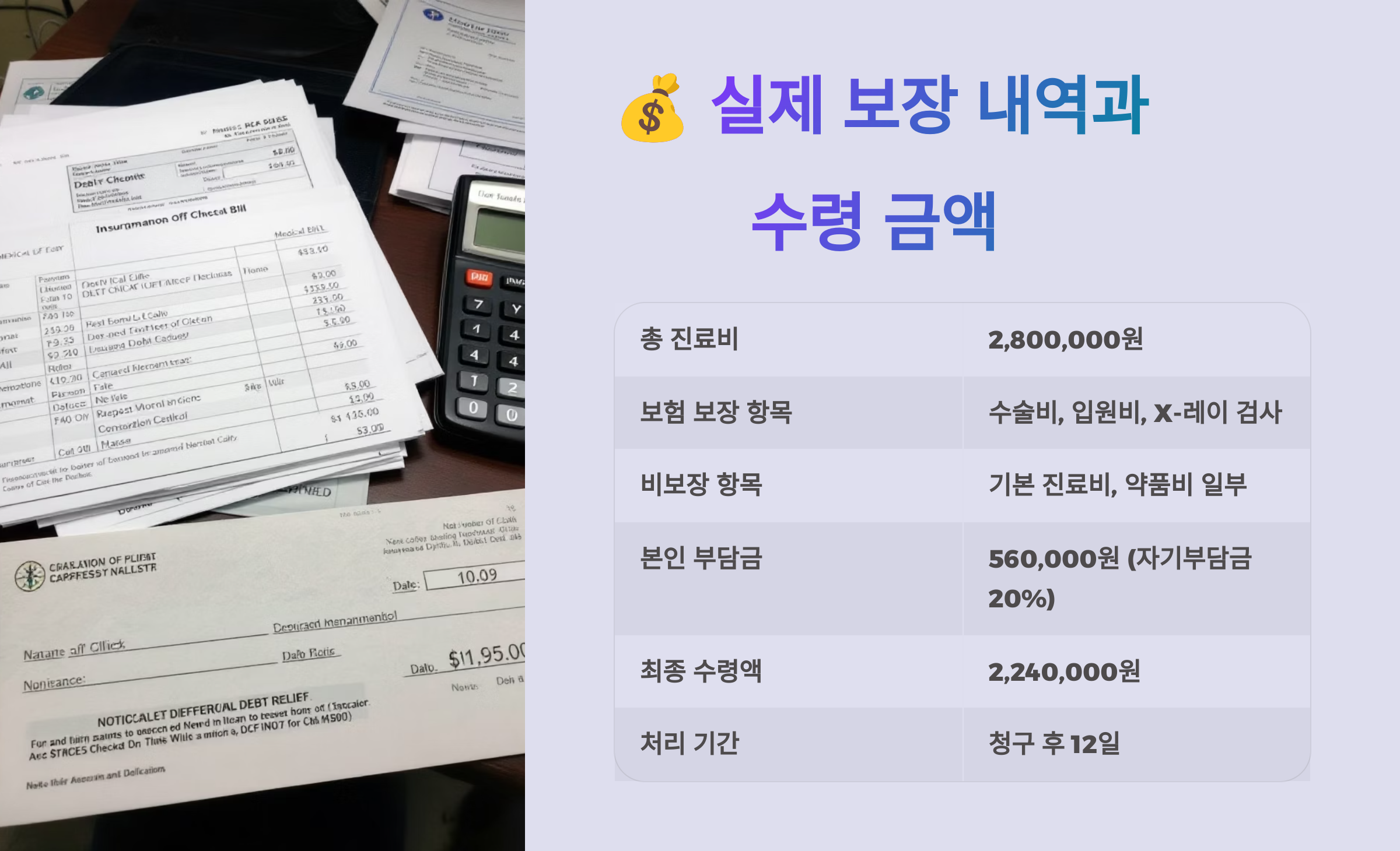 병원비를 카드로 긁고도 한숨 돌릴 수 있었던 건 이 덕분이에요. 특히 수술비는 고스란히 적용되었고, 입원비와 재활치료도 일부 항목은 100% 보장됐어요. 정말이지 ‘들길 잘했다’라는 말이 절로 나왔죠. 🙏