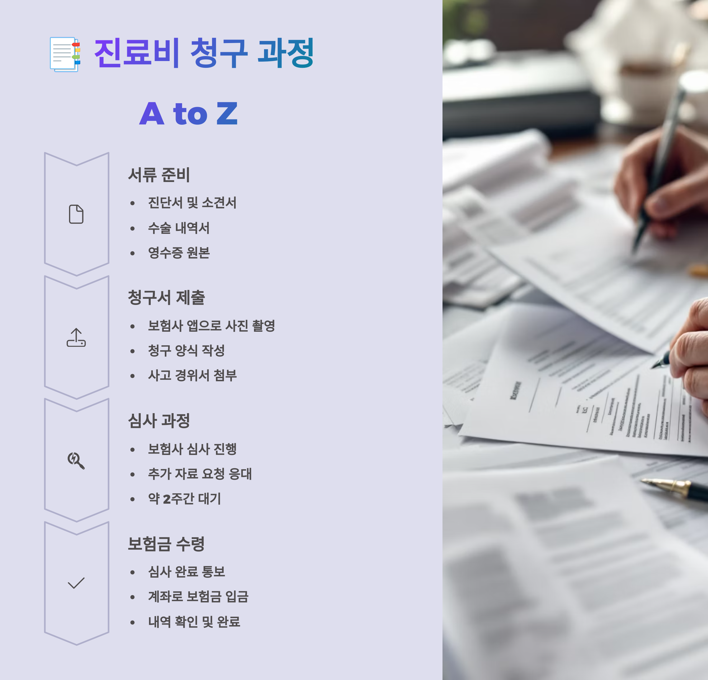 병원에서 받은 진단서, 수술비 영수증, 진료 내역서, 약 처방서까지 꼼꼼히 챙겨야 보험 청구가 가능하거든요. 저는 보험 가입 시 받은 안내서를 바탕으로 빠르게 준비했어요.