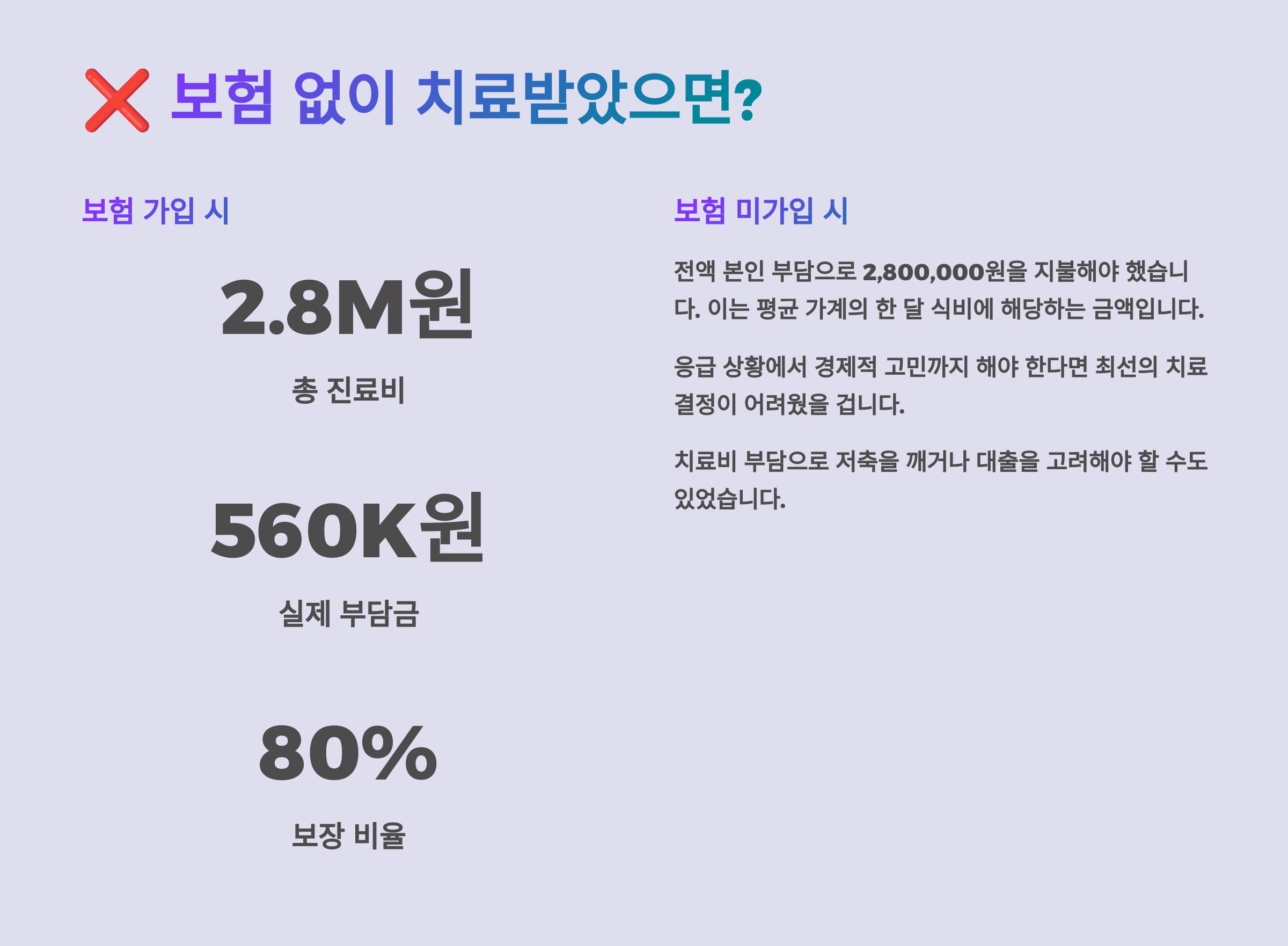 만약 보험이 없었다면 어땠을까? 생각만 해도 아찔해요. 😓