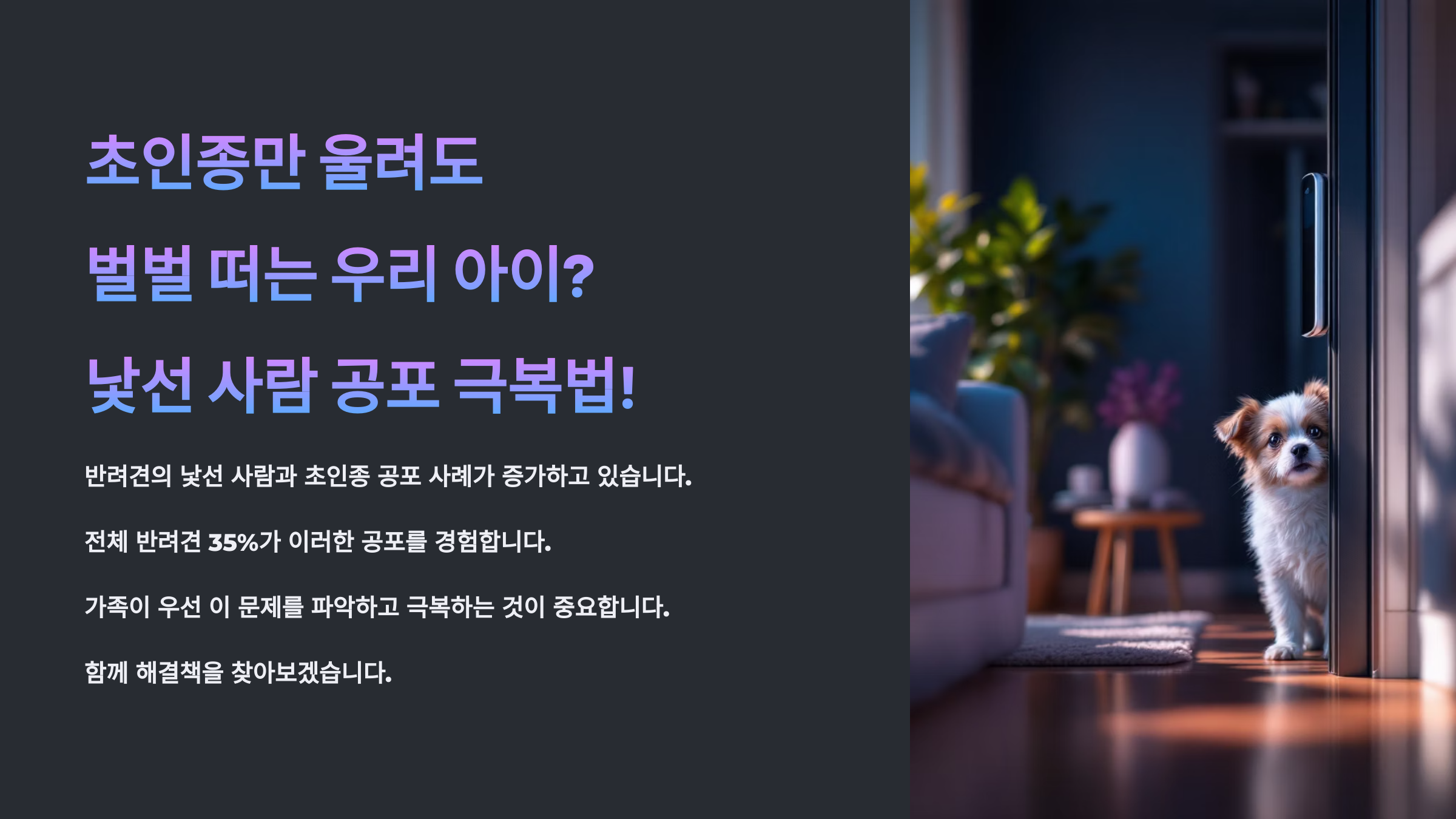 문 앞에서 초인종만 울리면 귀가 쫑긋! 갑자기 벌벌 떨고 구석으로 숨거나, 반대로 격하게 짖는 우리 강아지... 혹시 낯선 사람에 대한 공포심 때문에 그런 걸까요?
