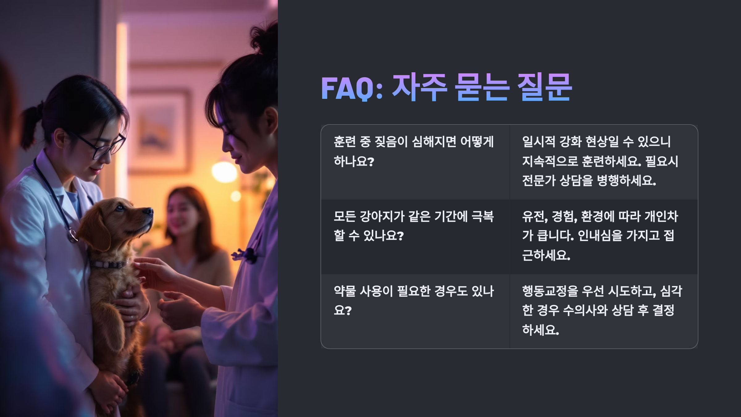 | 유전적 성향 | 민감한 견종 특성 | 환경 안정+루틴화 |