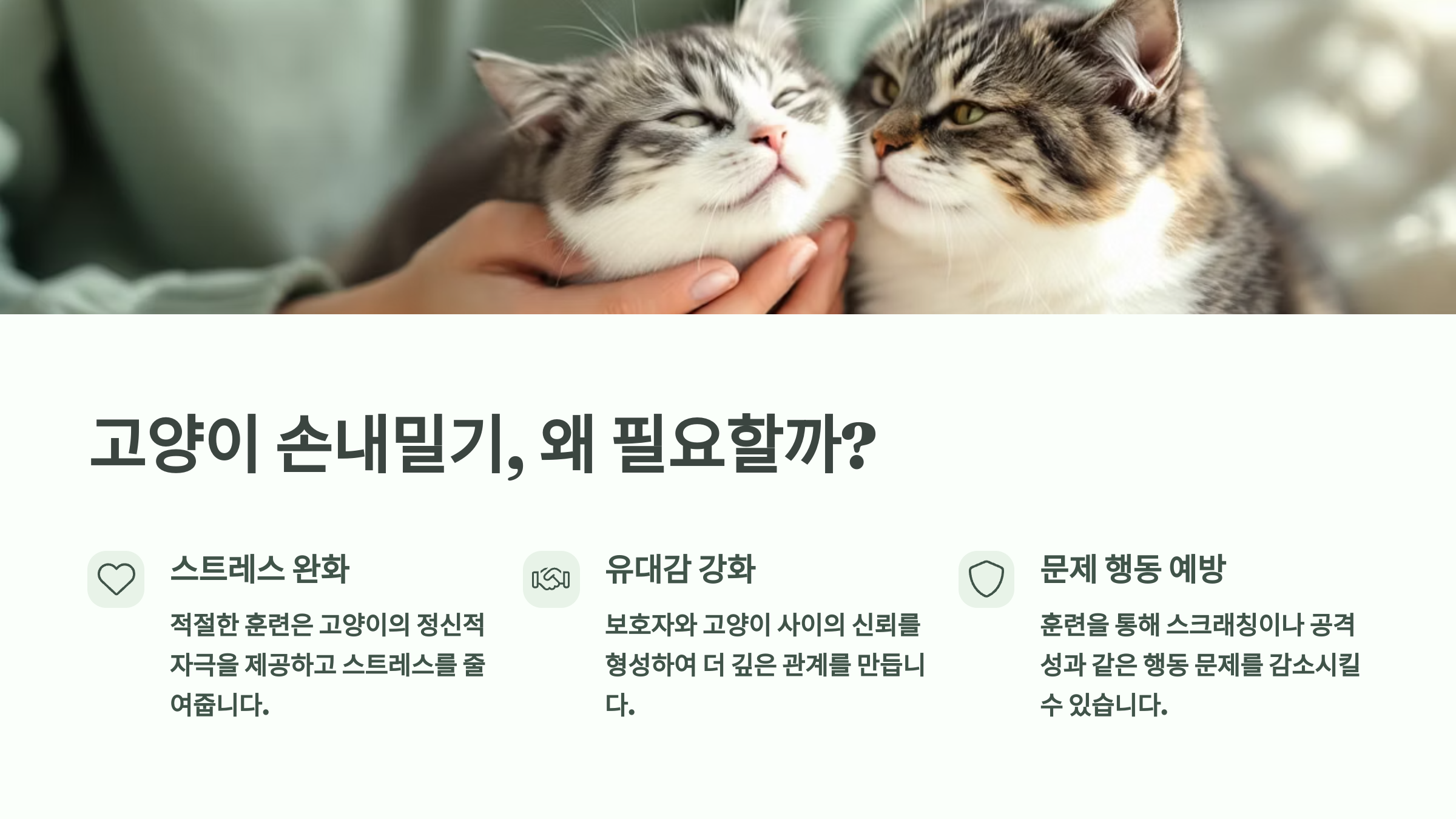 특히 초보 집사분들도 쉽게 따라할 수 있도록 쉬운 단계별 가이드로 준비했어요. 오늘부터 천천히 시도하면 우리 고양이도 손을 내밀 준비가 되어 있을 거예요! 🐱💖
