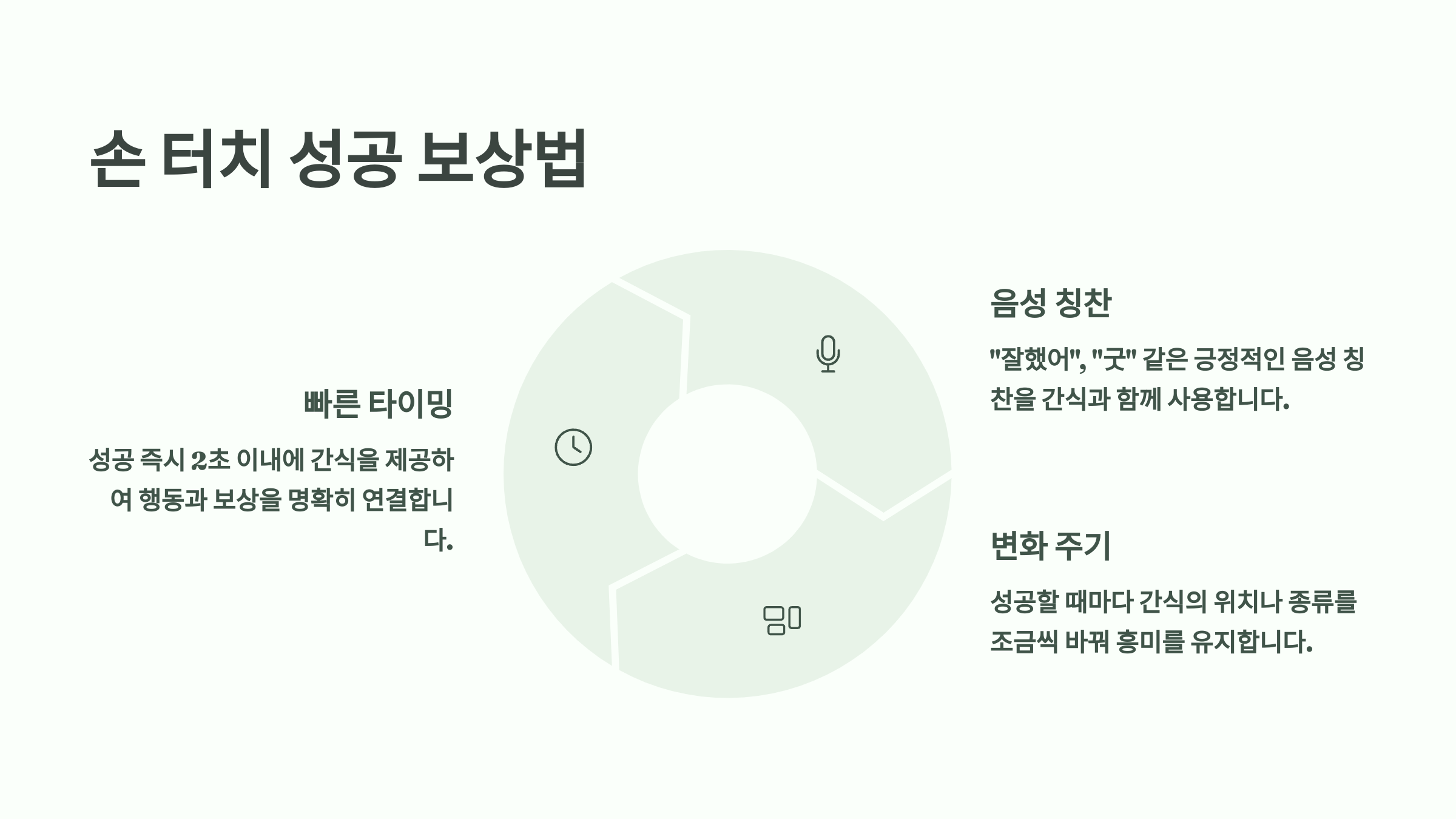 손 터치에 성공했다면, 적절한 타이밍과 방식으로 보상해 주는 것이 중요해요! 🖐️🍖