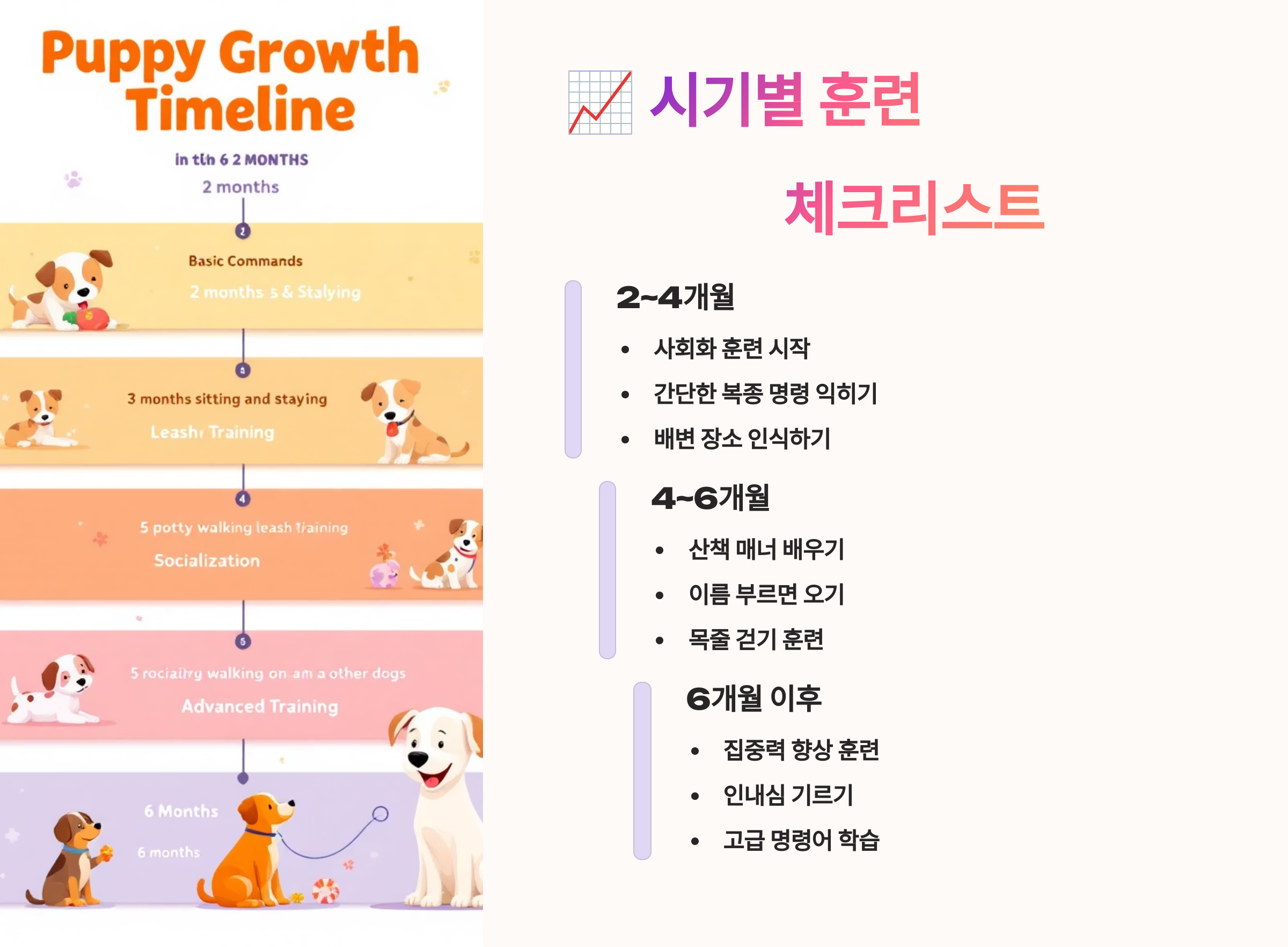 아이 나이에 따라 훈련 방식과 목표는 달라져야 해요! 시기별로 꼭 체크해야 할 훈련 항목들을 정리했어요 📝