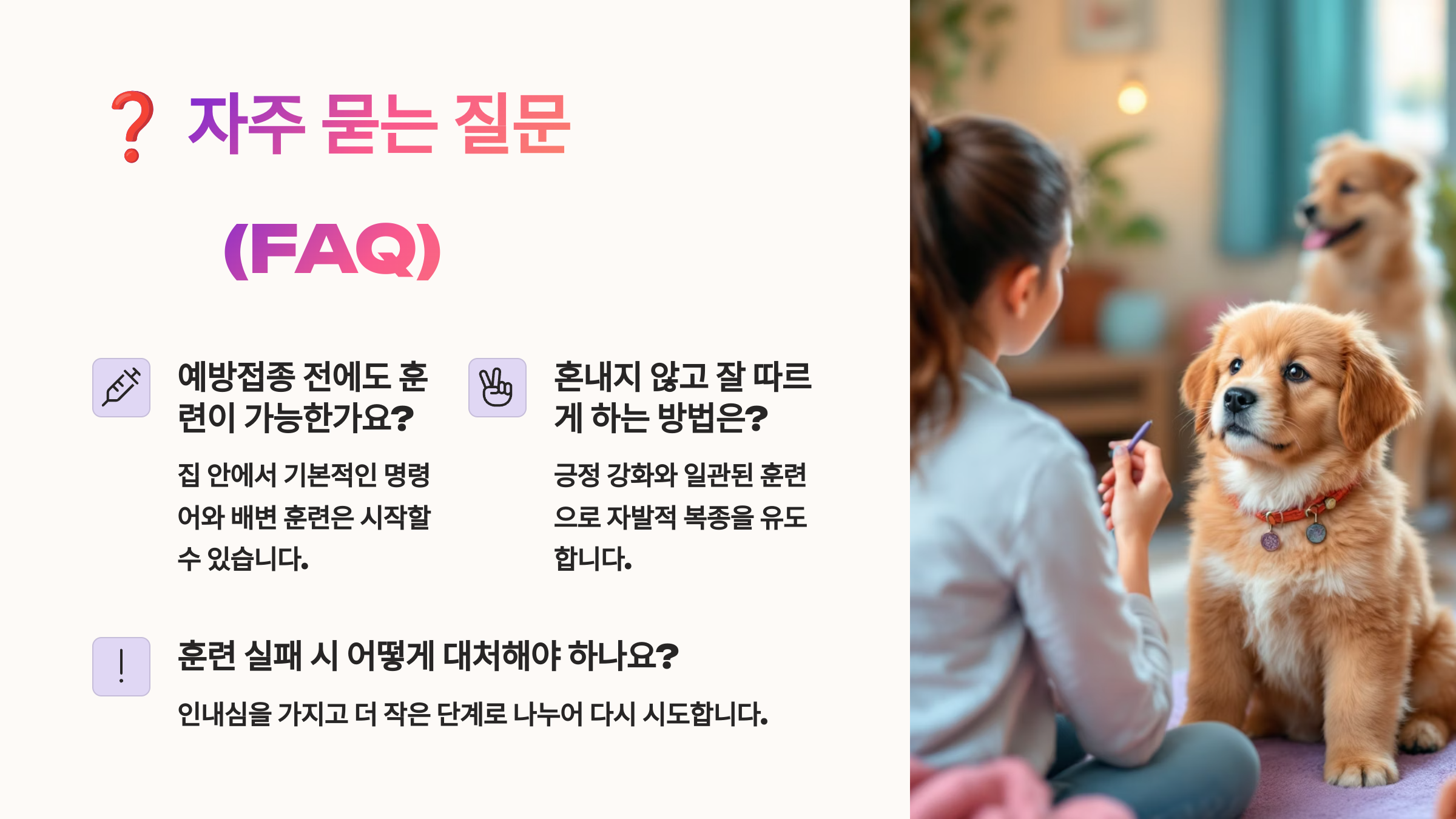 💡 훈련은 습관 + 타이밍 + 긍정의 콜라보! 아이를 이해하는 눈이 훈련의 시작이에요 🐾