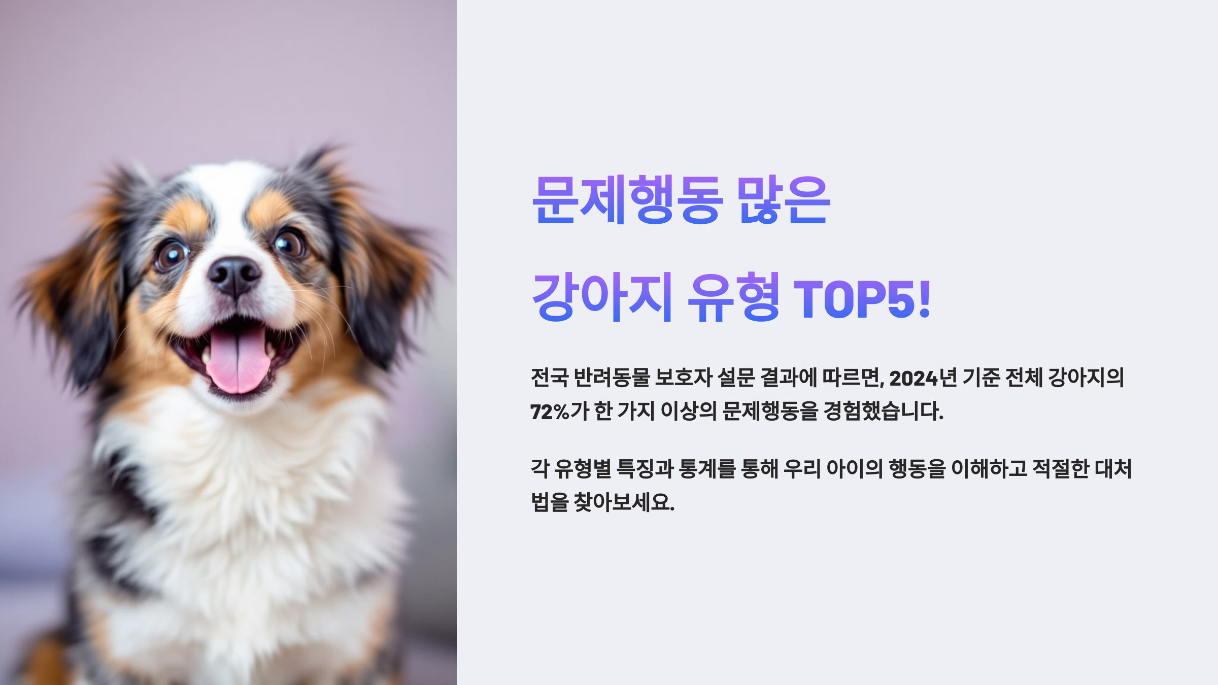 강아지가 너무 짖거나, 혼자 두면 울고, 갑자기 손을 무는 행동을 보이면 "우리 아이 성격이 이상한 걸까?" 하는 걱정이 들 수 있어요. 😢 하지만 이런 문제행동은 유형별로 원인과 해결법이 다르기 때문에 정확하게 파악하면 충분히 개선이 가능하답니다! 💪