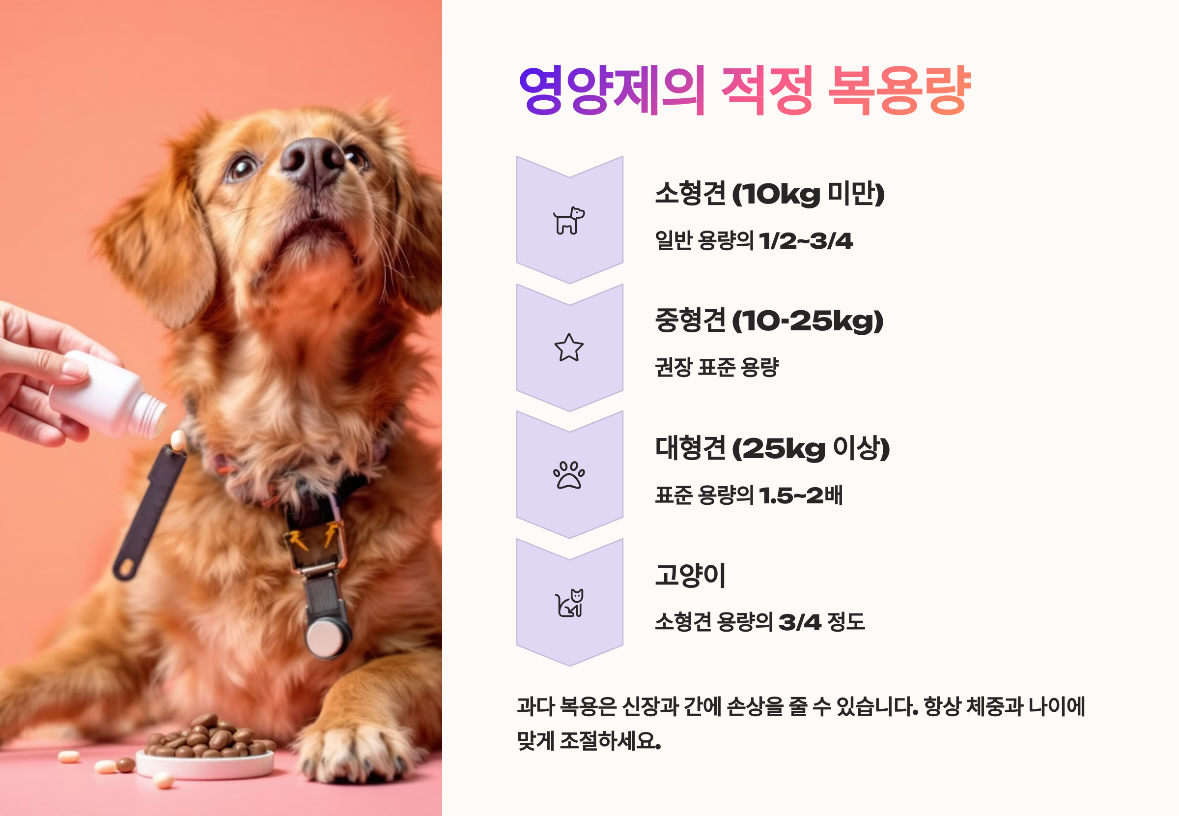 영양제를 고를 때, 적정 복용량을 지키는 것이 매우 중요해요. 🐾