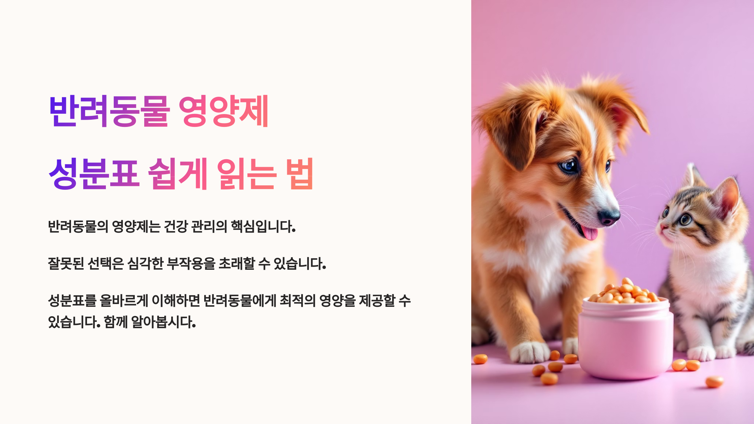 반려동물 영양제를 고를 때, 성분표를 읽고 이해하는 능력이 건강한 선택을 돕는 첫걸음이에요. 🧑⚕️