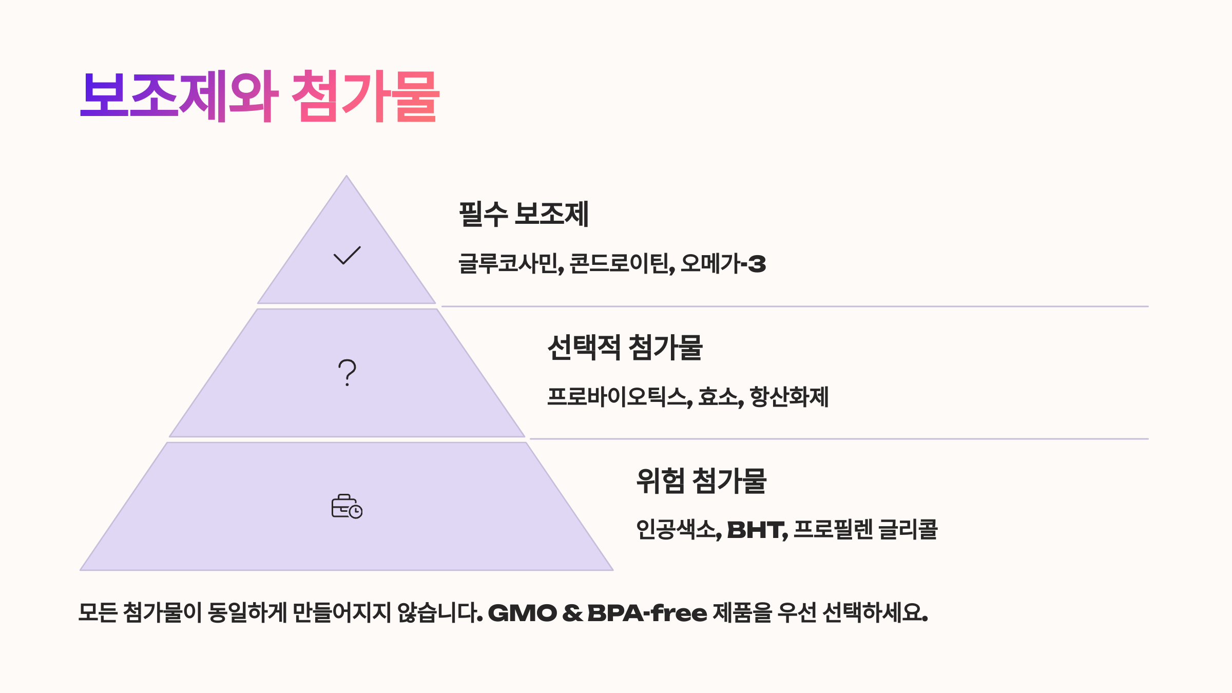 반려동물 영양제에서 보조제와 첨가물은 종종 필수적인 성분으로 추가돼요. 🐾