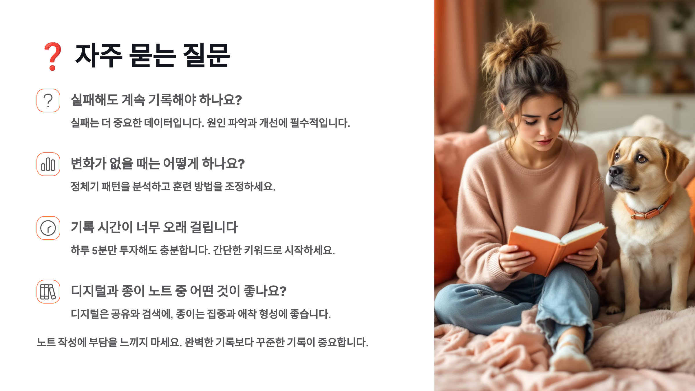 Q8: 훈련 노트 작성이 번거로울 때, 어떻게 동기를 유지해야 할까요?