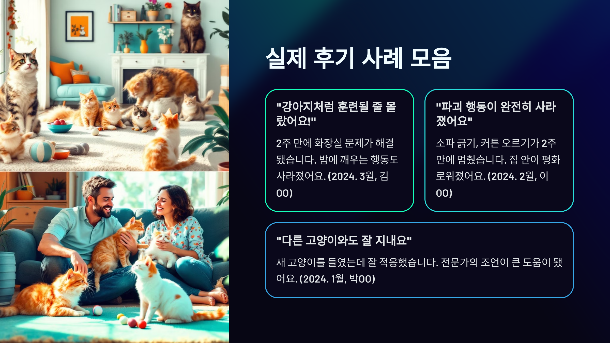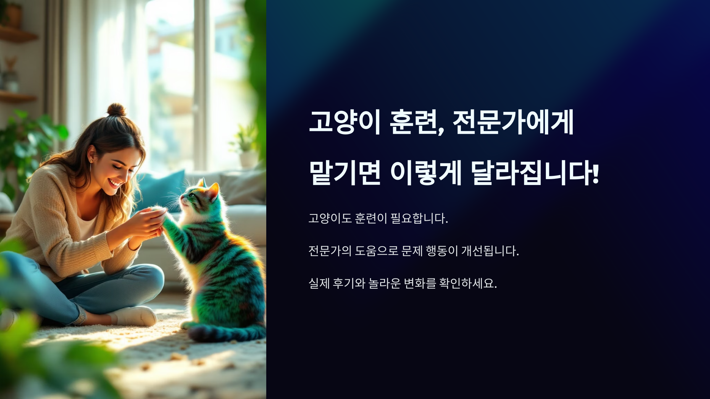 후기를 보면 알겠지만, 훈련은 단순한 기술이 아니라 고양이와의 관계를 회복하는 과정이에요. 전문가 손길이 더해지면 이런 변화가 가능하답니다! 🐾😺
