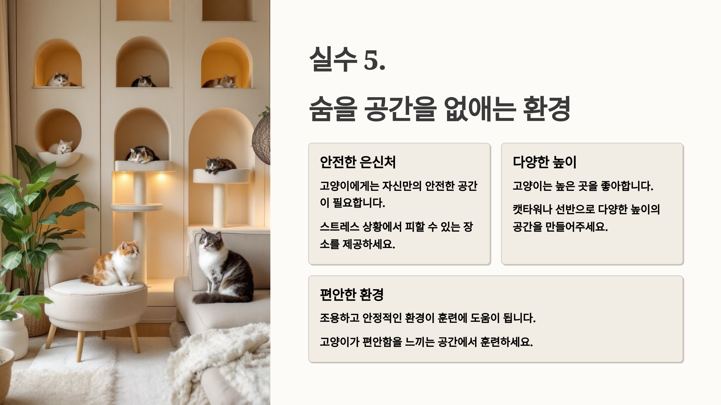 🏠 실수 5. 숨을 공간을 없애는 환경