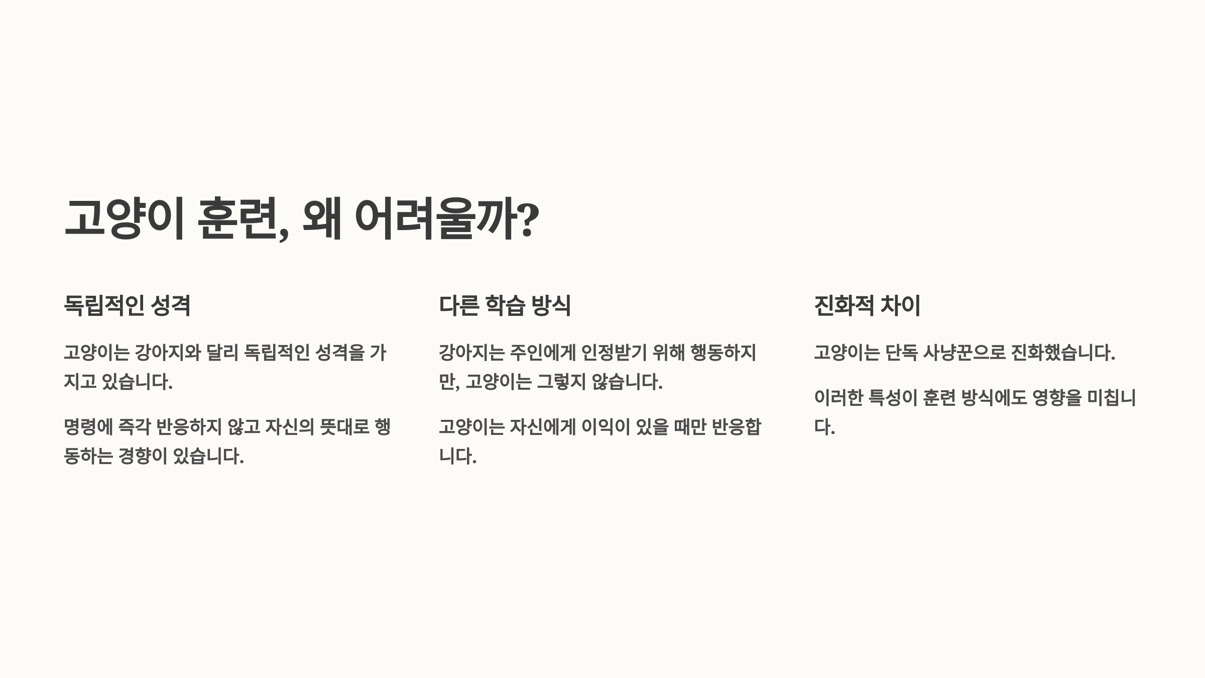 🐱 고양이 훈련, 왜 어려울까?