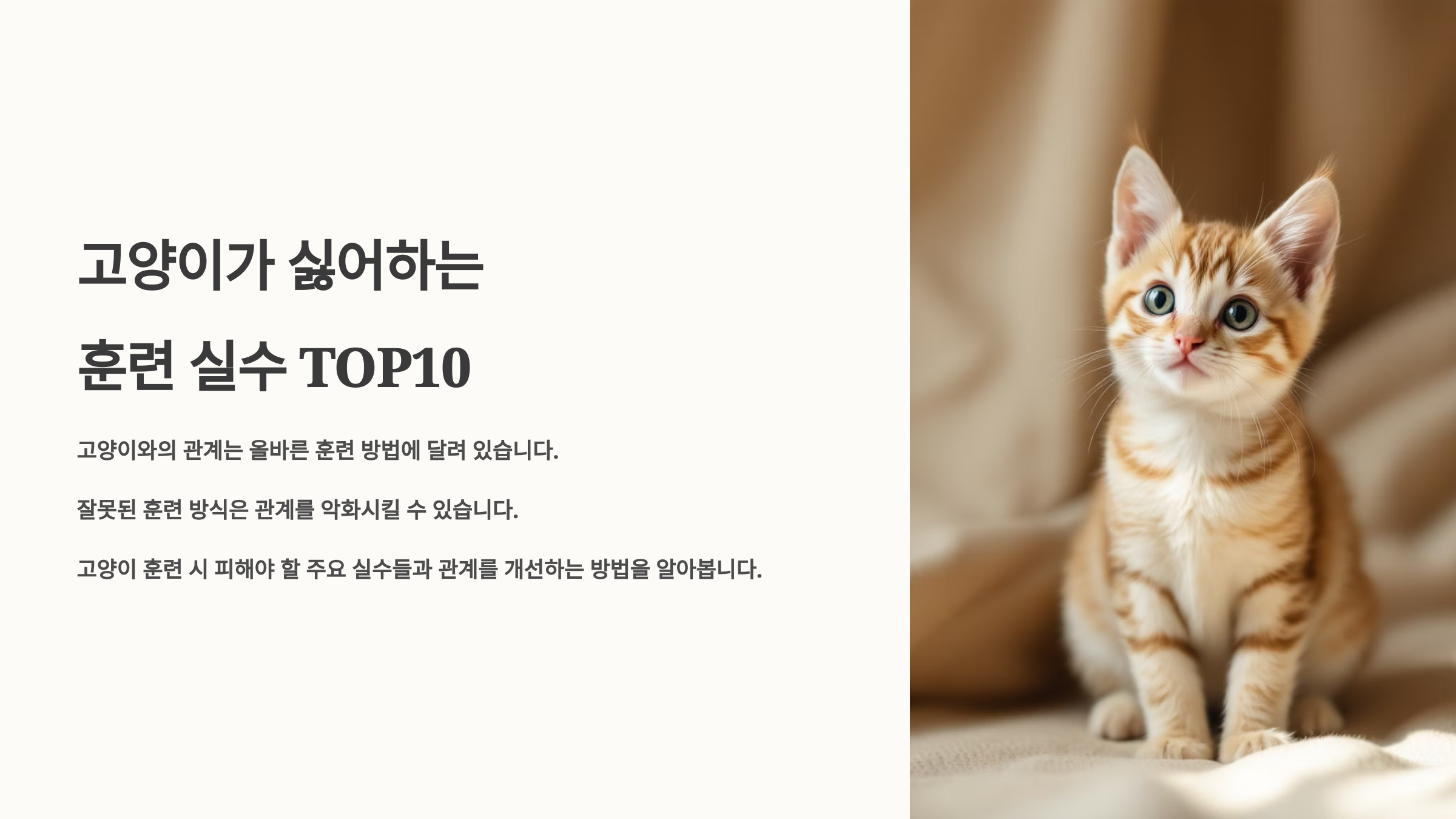 이번 글에서는 고양이가 가장 싫어하는 훈련 실수 10가지를 콕 집어 설명해드릴게요. 내가 생각했을 때 이 리스트는 단순 훈련 노하우를 넘어, 고양이와 평생 행복하게 지내기 위한 관계 매뉴얼이라고도 볼 수 있어요. 🐾